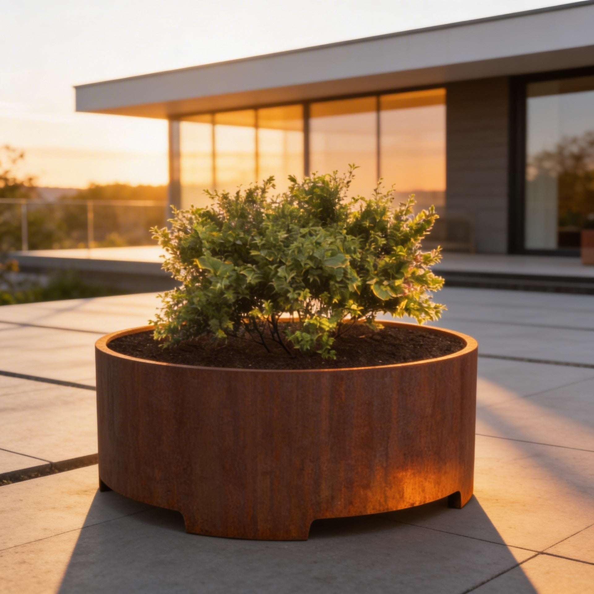Der Sommer ist die perfekte Zeit, um deinen Garten in eine echte Wohlfühloase zu verwandeln. Mit Pflanzgefäßen aus Cortenstahl setzt du stilvolle Akzente und schaffst ein harmonisches Ambiente im Freien. Die warme, rostbraune Patina dieses außergewöhnlichen Materials bildet einen wunderschönen Kontrast zu sattem Grün, bunten Blüten und modernen oder klassischen Architektur-Elementen. Ob auf der Terrasse, im Eingangsbereich oder als Blickfang im Garten – diese Pflanzgefäße bringen Charakter und Beständigkeit in deine Außenbereiche.