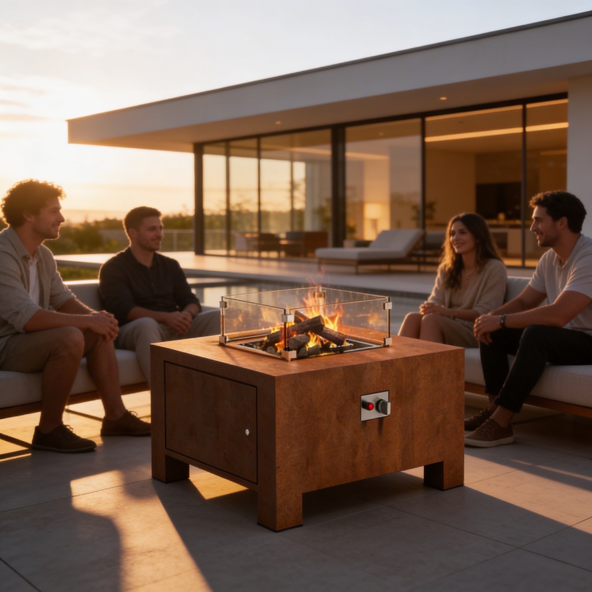 Gasbrenner aus Cortenstahl (80cm x 80cm x 50cm)