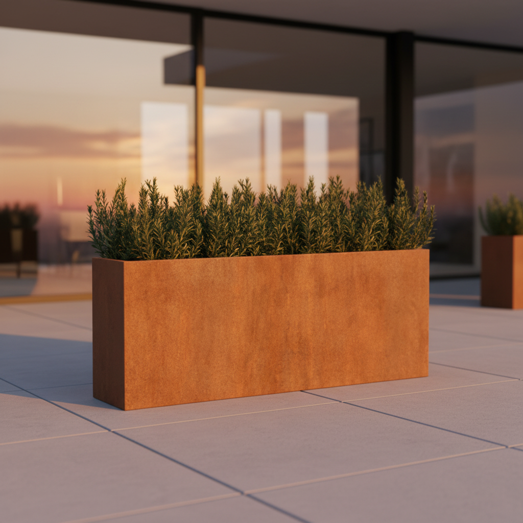 Der Sommer ist die perfekte Zeit, um deinen Garten in eine echte Wohlfühloase zu verwandeln. Mit Pflanzgefäßen aus Cortenstahl setzt du stilvolle Akzente und schaffst ein harmonisches Ambiente im Freien. Die warme, rostbraune Patina dieses außergewöhnlichen Materials bildet einen wunderschönen Kontrast zu sattem Grün, bunten Blüten und modernen oder klassischen Architektur-Elementen. Ob auf der Terrasse, im Eingangsbereich oder als Blickfang im Garten – diese Pflanzgefäße bringen Charakter und Beständigkeit in deine Außenbereiche.